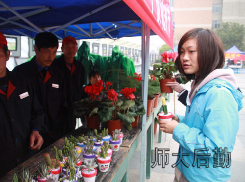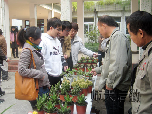 活动当天,状元扇、万丛山、不夜城等稀奇的植物吸引了师生纷纷竞相选购,仙人球、芦荟等耐看耐养的盆景也得到了师生们的青睐,观音莲、碧玉等可爱的小盆景也广受欢迎。现场,工作人员还耐心地为师生讲解各种植物养护的方法。