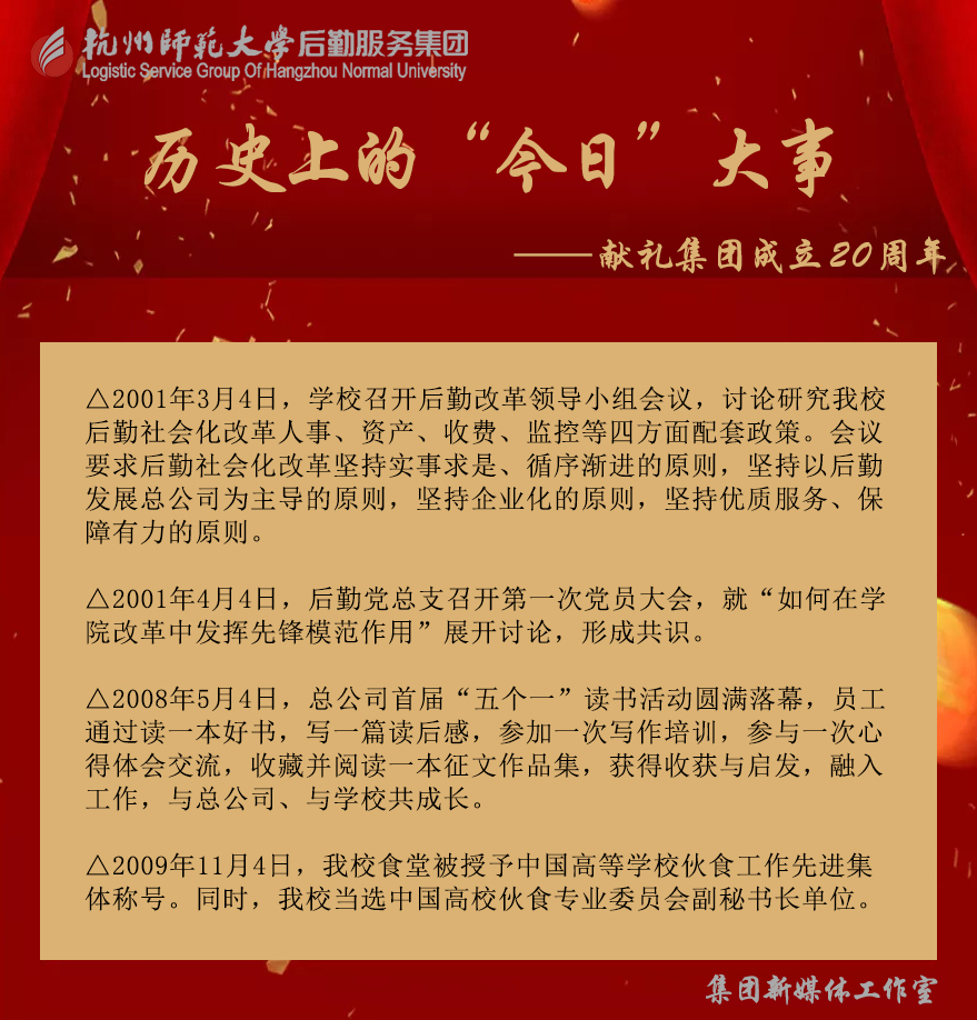 站在新的历史起点,面对新的发展机遇,我们更要好好守护这段共同经历的珍贵记忆,从中汲取前行的力量,在新的征程上砥砺前行!官网自今日起,特推出《历史上的“今日”大事》专栏,向集团20周年献礼。