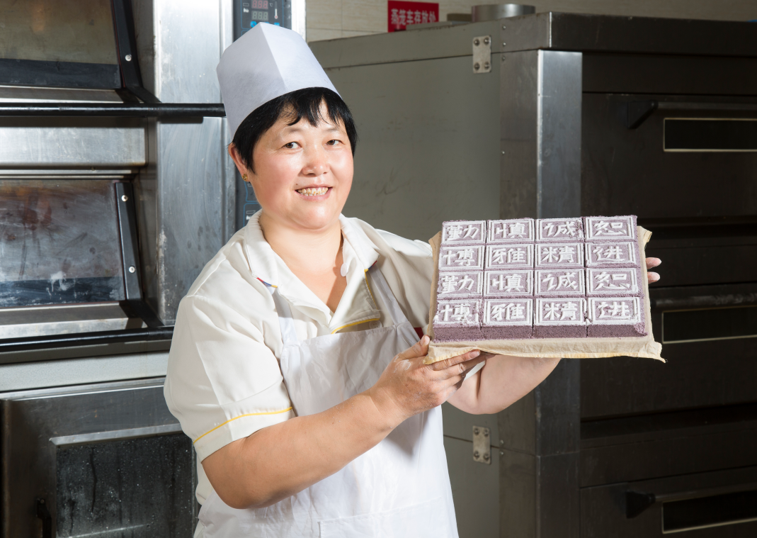 通过日复一日的练习,黄玲的面点技术日益精进,每次学校有重大餐饮接待任务,都少不了她制作的点心。学校本科教学审核评估接待期间,连续4个餐次的夜宵点心供应都由黄玲带领面点班组制作,板栗酥、榴莲酥蛋黄酥、曲奇饼干、榨菜肉丝月饼等品种,每天不重样。2018年学校百年校庆期间,更是将杭州闻名已久的状元糕和校训结合在了一起,创作出校训糕,广受师生喜爱。