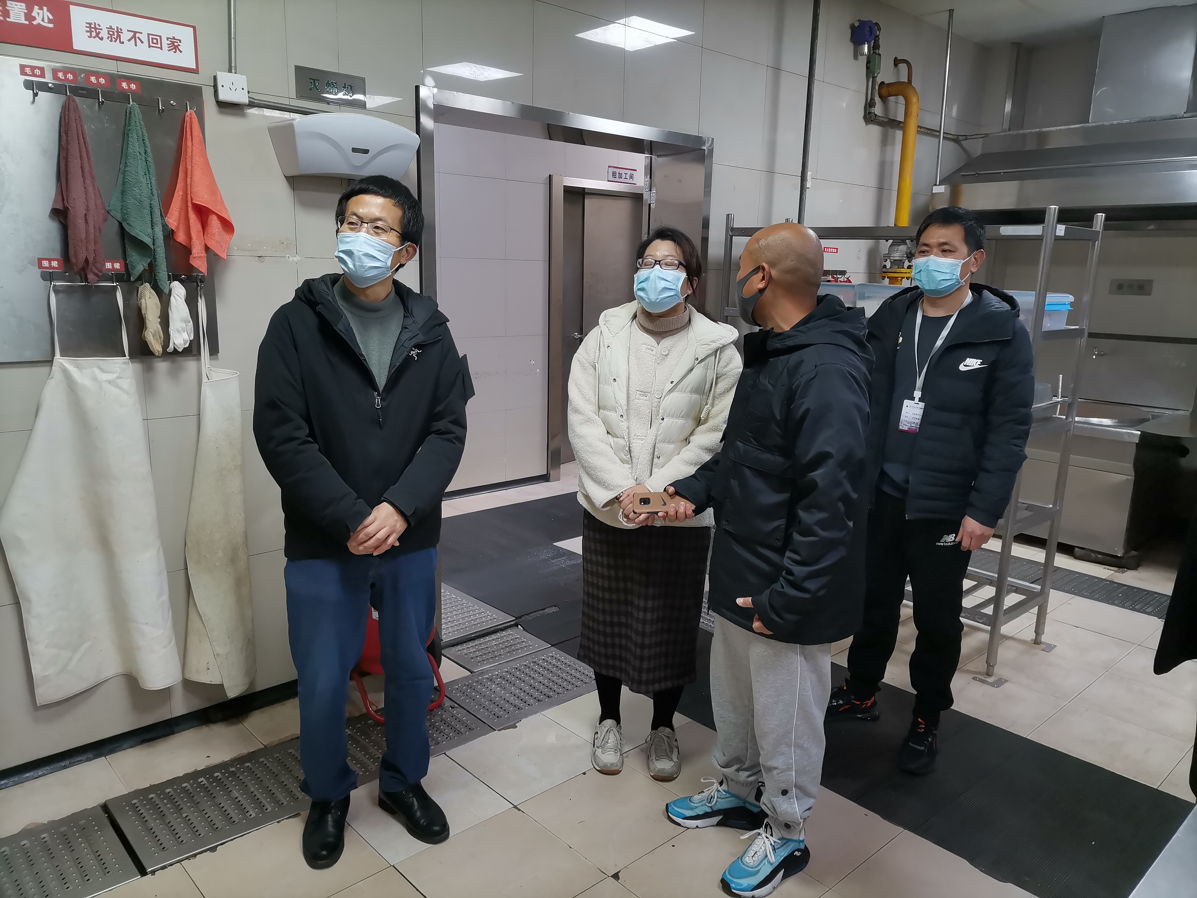 中心领导实地走访餐厅、学生公寓、配电房、水泵房、健康驿站、留学生宿舍、员工宿舍、教师公寓等重要场所,重点询问和了解各部门员工到岗及健康情况、新学期开学准备、学生返校、食品供应、设施设备运行、部门存在的困难等情况。
