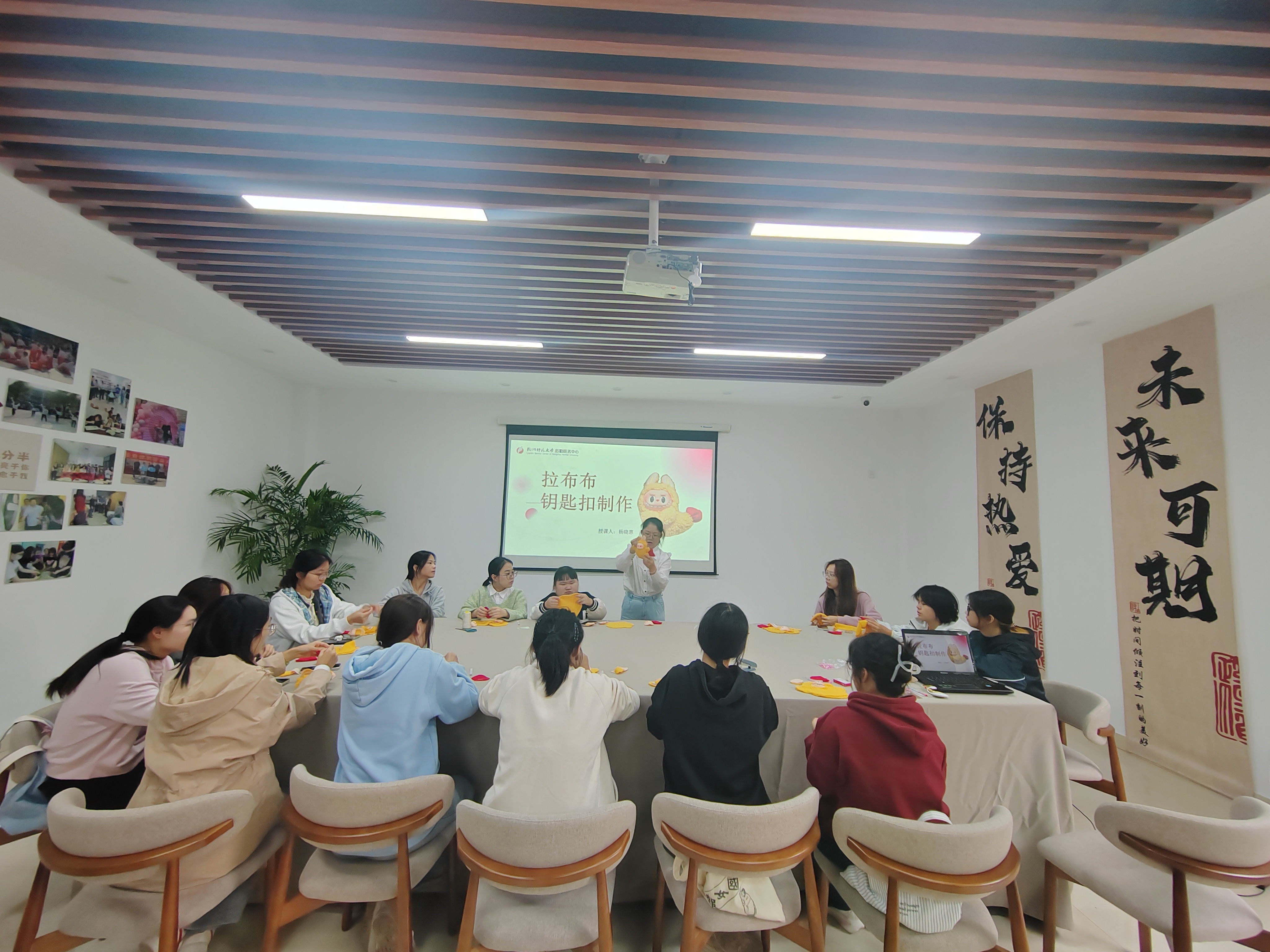 ▲公寓服务中心开展“拉布布钥匙扣制作”社区小课堂活动。生活老师首先向同学们详细介绍制作材料与完整步骤,重点讲解缝制工艺中的关键技巧。在实践环节中,同学们在老师指导下专注投入,运用所学方法亲手缝制个性钥匙扣。整场课堂氛围轻松愉快,学生在手工实践中既锻炼了动手能力,又感受到创意手作的乐趣。