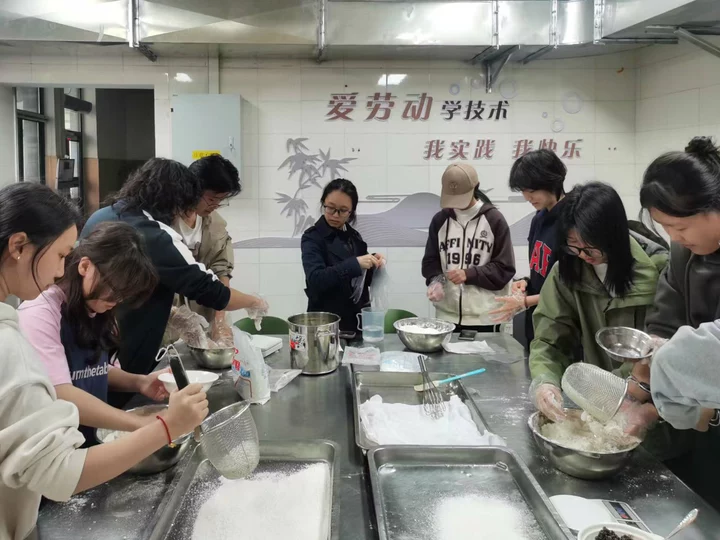 城区服务中心开展“制作重阳糕”劳动实践课程。10月29日重阳节当天,部门组织10名学生在“匠心小厨”体验传统糕点制作。学生在指导老师带领下分工协作,完成称重配料、搅拌粉浆、过筛蒸制、压模成型及装饰桂花等完整工艺流程。有学生手持成品欣喜表示:“亲手制作的糕点更有温度!”此次活动让学生在劳动实践中感受传统节日的文化内涵。