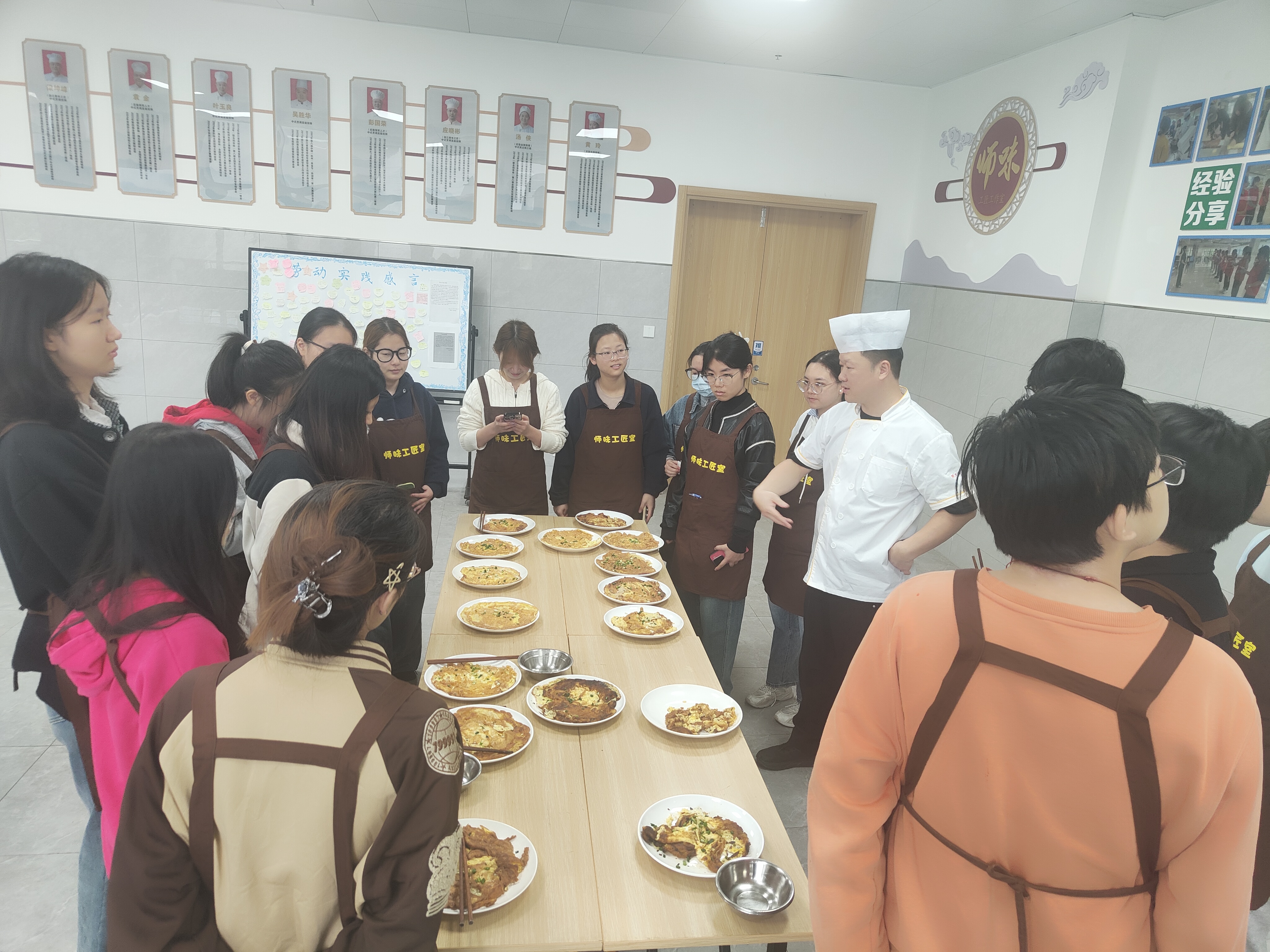 饮食服务中心工匠工作室开展制作“肉丝跑蛋”家常菜课程。课程打破课堂与生活壁垒,将劳动技能学习融入日常,彭老师详解菜品对火候掌控、食材搭配的要求,强调其是培养耐心与动手能力的优质载体。同学们分组协作系围裙化身 “小厨师”,在指导下完成切肉、打蛋、调味、颠勺等操作,专注投入制作。金黄诱人的菜肴出锅后,大家品尝劳动成果,纷纷表示既提升了独立自主能力,也深切体会到父母日常辛劳。