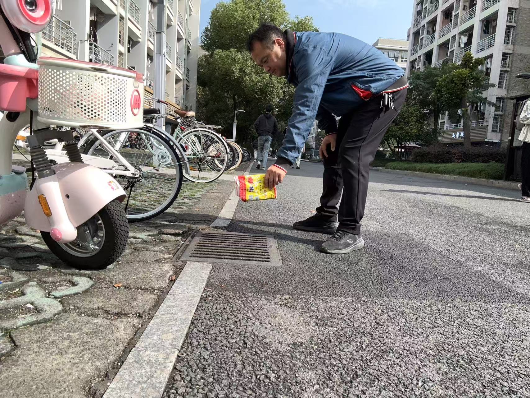 ▲下沙校区物业服务中心开展除“四害”工作筑牢校园卫生防线。部门组织专业工作人员携带专业药剂,对下水道口等“四害”易滋生区域全面排查,通过安全高效的药物投放等方式精准杀灭蚊虫、蟑螂等有害生物,切实为师生营造整洁安全的教学生活环境。