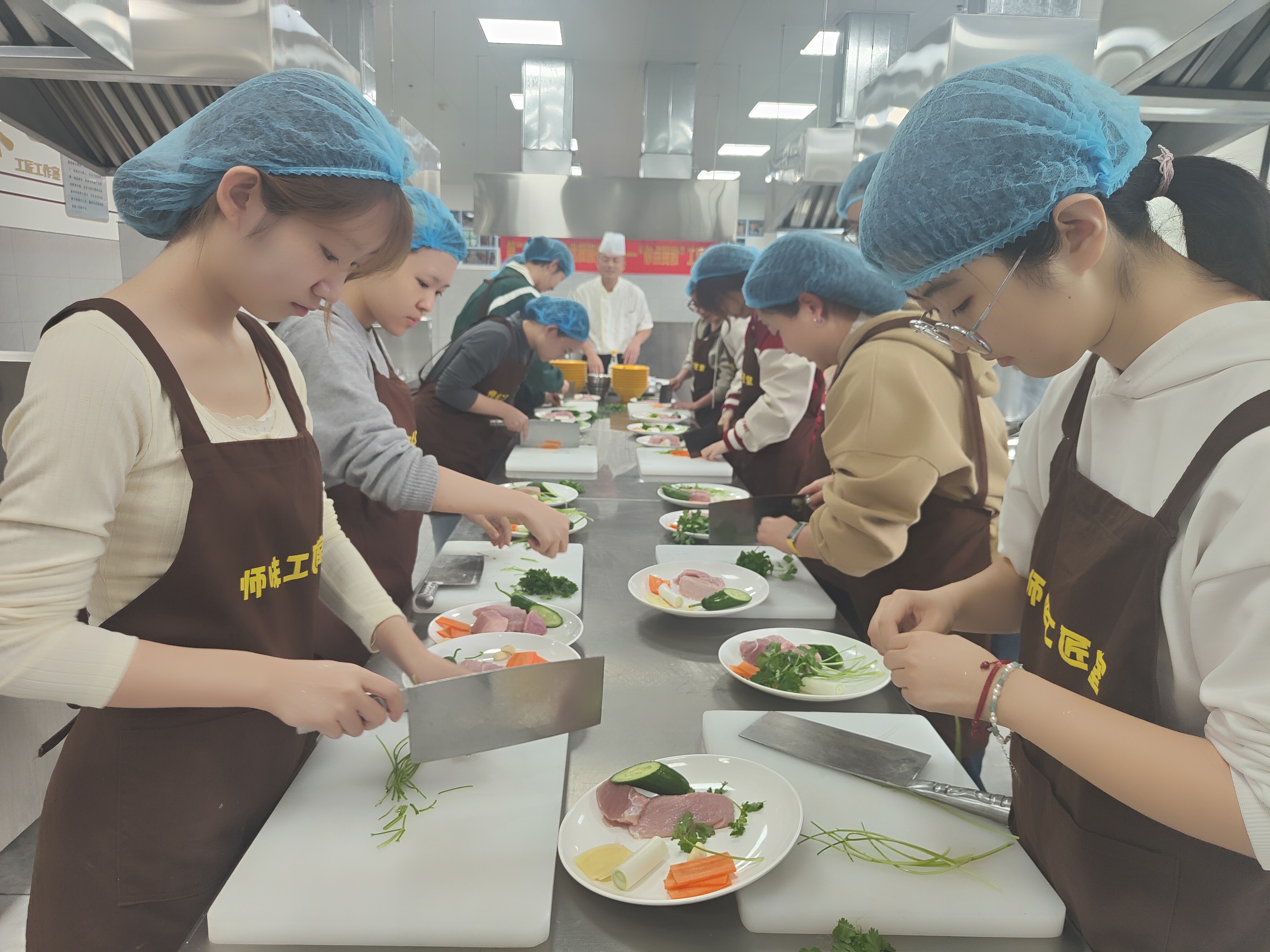 ▲饮食服务中心工匠工作室开展东北名菜“锅包肉”实践教学课程。授课师傅为同学们详解选料标准、挂糊技巧及烹汁火候要领,强调油温对菜品“色泽金黄、外酥里嫩”的关键作用并现场演示。同学们分组协作化身“小厨神”动手制作,一盘盘香气扑鼻的锅包肉出锅后,大家品尝劳动成果满脸自豪。课程将劳动教育融入日常,既让学生体验劳动乐趣、感受饮食文化,也培养了基础生活技能与团队协作精神。