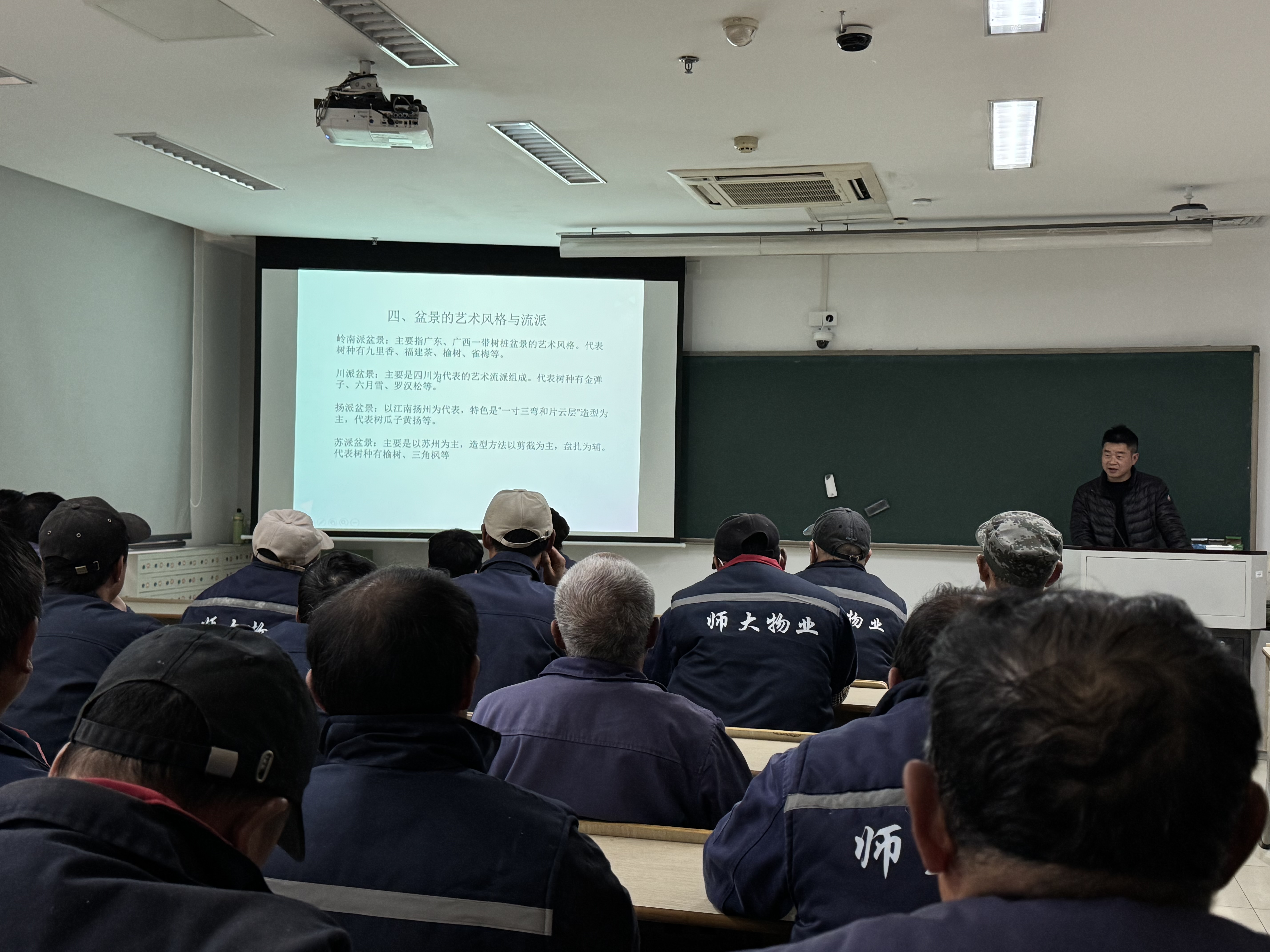 ▲仓前校区物业服务中心开展草花养护专项培训。为提升绿化养护人员草花精细化管护水平,部门特邀杭州植物园吴志荣老师授课,培训分为理论与实操两大环节。理论讲解中,老师系统介绍常见草花品种特性、水肥管理要领、病虫害防治方法及修剪造型技巧,重点强调换季关键期养护要点;实操现场,工作人员进行科学浇水、精准施肥、病虫害识别防治等演示,确保参训人员熟练掌握养护规范,为校园绿化品质提升夯实技能基础。