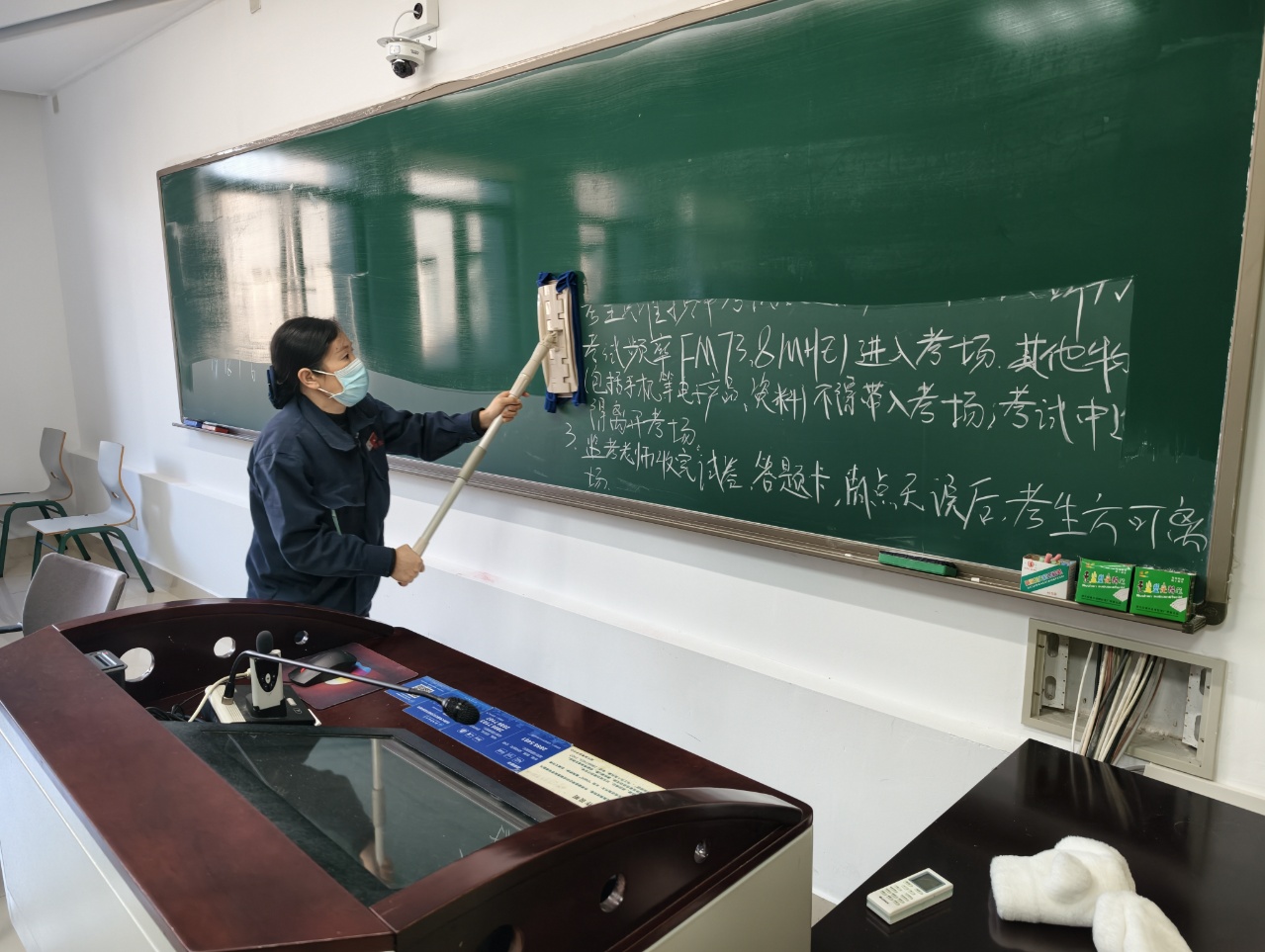 ▲仓前校区物业服务中心扎实做好英语四六级考试服务保障工作。考试期间,部门为6000余名考生保驾护航,考前严格按照学院要求,完成恕园92个、勤园118个考场的标准化布置,同步校准时钟、张贴考试标识。考试过程中,保洁人员定时定点开展清洁作业,全力维护考场环境整洁有序。工作人员以细致举措将各项保障工作落实落细,为考试顺利进行提供坚实支撑。