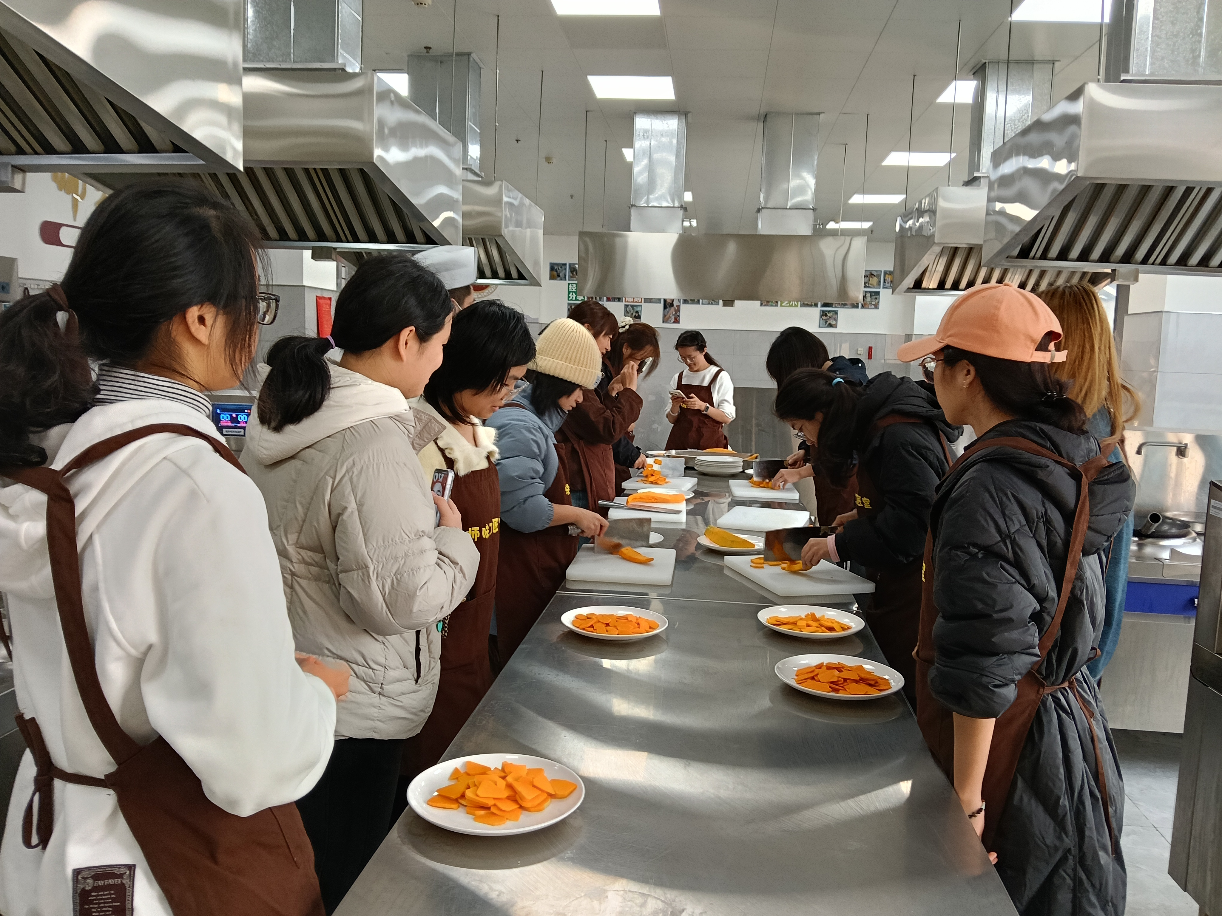 ▲饮食服务中心开设蛋黄南瓜制作特色课程。课程伊始,老师系统讲解南瓜的生长特性与营养价值,并演示蛋黄南瓜的标准制作流程,细致传授裹粉、控温、炒酱等关键技巧,让学生对实践操作充满期待。实践环节中,学生们分组协作,各司其职开展炸制、调味等操作,烹饪香气与欢声笑语交织弥漫。课程尾声,学生们主动清理操作台、清洗厨具,在全程参与中体验完整劳动流程,既掌握美食制作技能,又培养良好劳动习惯与责任意识。