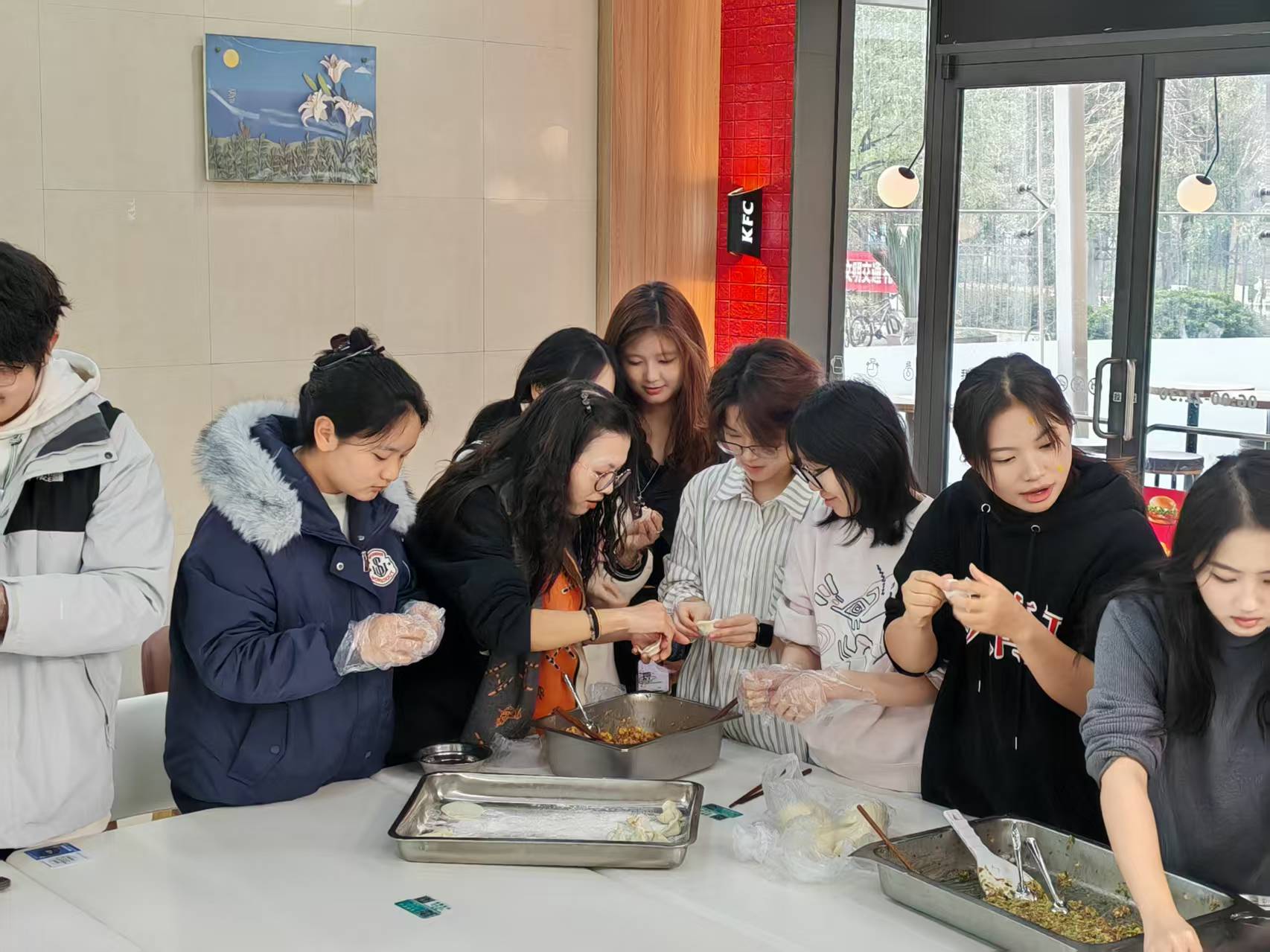▲饮食服务中心和园餐厅协助公共管理学院开展包水饺活动。12月17日,35名学生齐聚餐厅,体验包饺子乐趣、感受传统饮食文化魅力。活动前,餐厅提前清理场地、备齐食材工具;活动中,同学们互帮互教、协作包制,一小时内用完所有食材。餐厅工作人员随即烹煮,同学们品尝到热气腾腾的劳动成果。