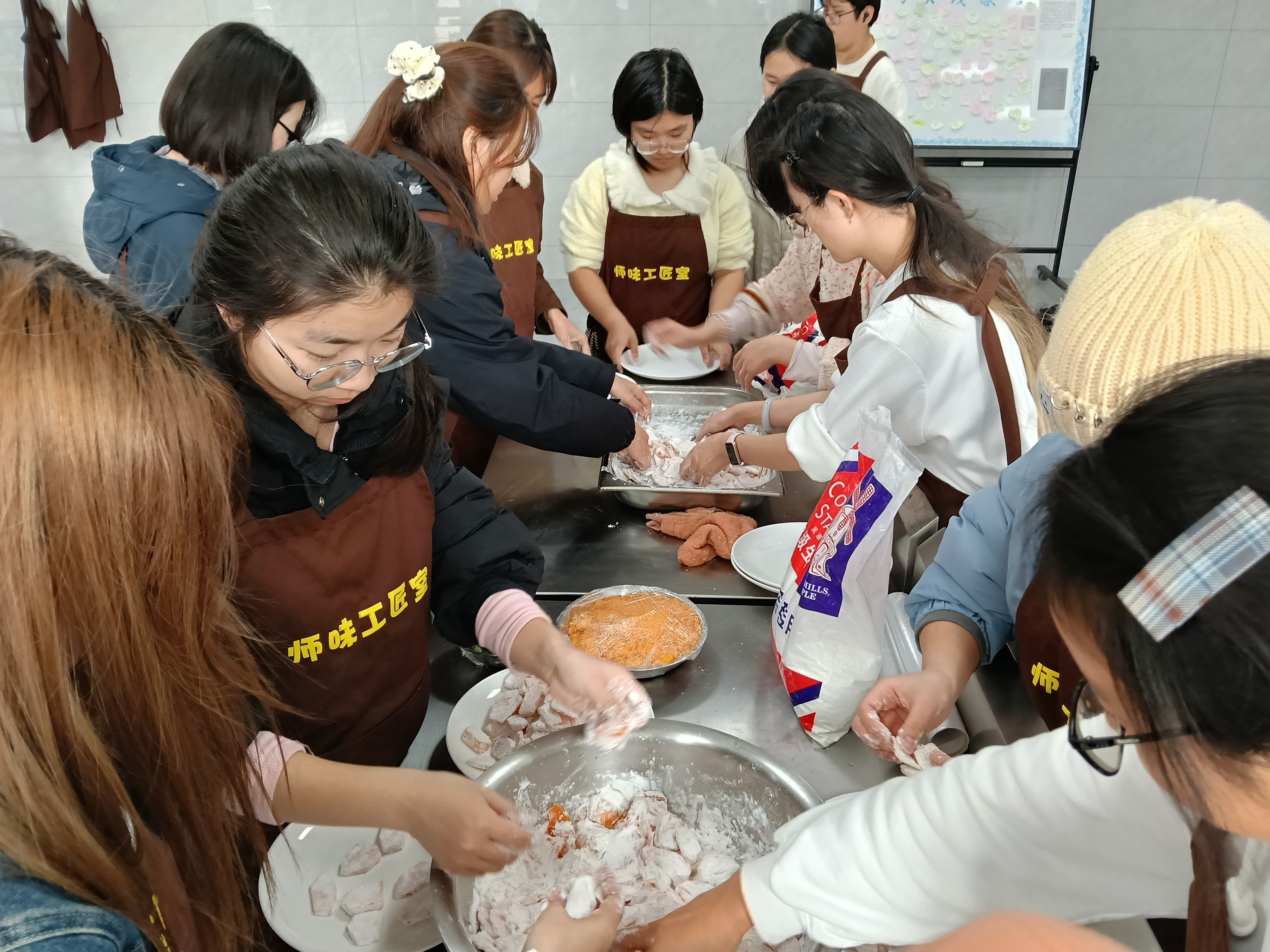 饮食服务中心开设蛋黄南瓜制作特色课程。课程伊始,老师系统讲解南瓜的生长特性与营养价值,并演示蛋黄南瓜的标准制作流程,细致传授裹粉、控温、炒酱等关键技巧,让学生对实践操作充满期待。实践环节中,学生们分组协作,各司其职开展炸制、调味等操作,烹饪香气与欢声笑语交织弥漫。课程尾声,学生们主动清理操作台、清洗厨具,在全程参与中体验完整劳动流程,既掌握美食制作技能,又培养良好劳动习惯与责任意识。
