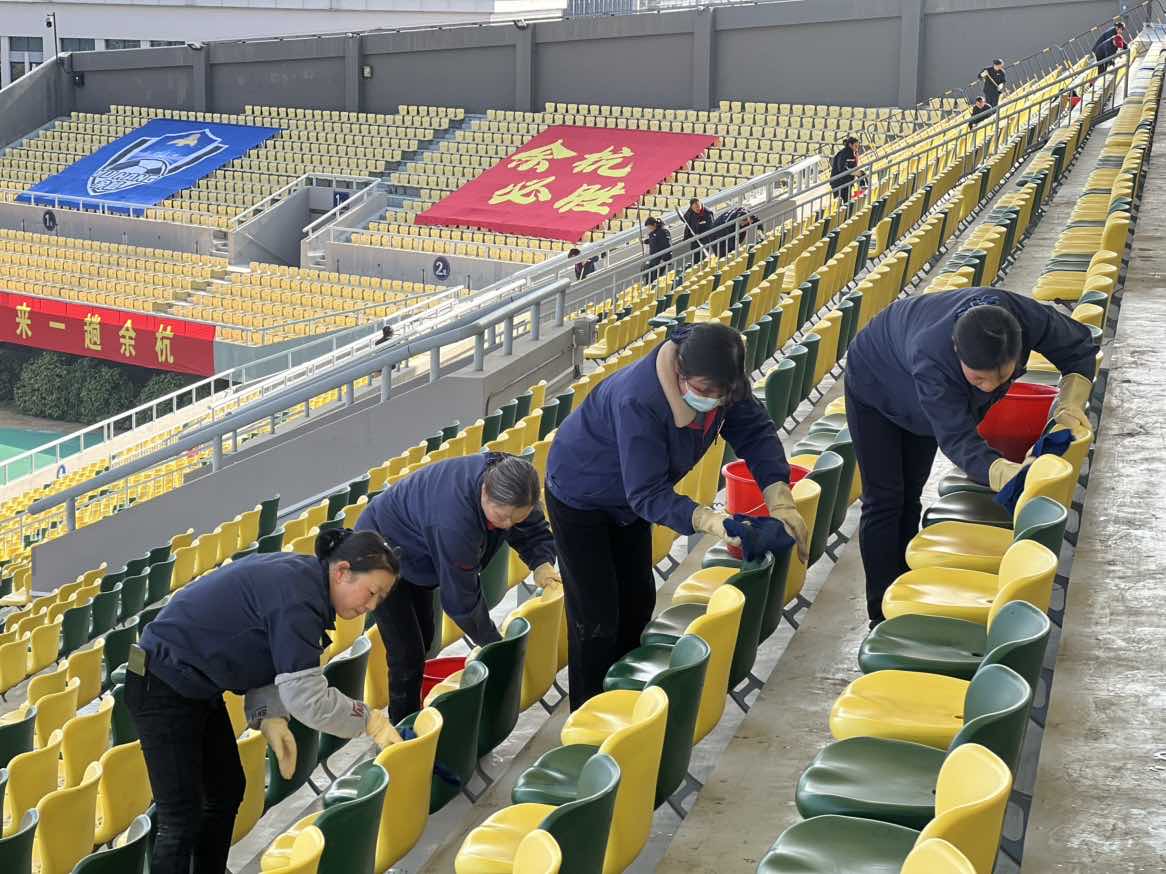 ▲仓前校区物业服务中心圆满完成杭州城市足球联赛余杭赛区环境卫生保障任务。为保障赛事顺利进行,中心周密部署、有序推进,赛前对卫生间、工作间、跑道及绿化带等重点区域进行全面清洁;赛中实施动态巡检机制,实时维护看台与卫生间环境整洁;赛后迅速组织清理,分类转运垃圾,高效恢复场地原貌。此次保障工作为赛事顺利举办提供了有力支持,充分展现了后勤物业的专业素养与服务水准。